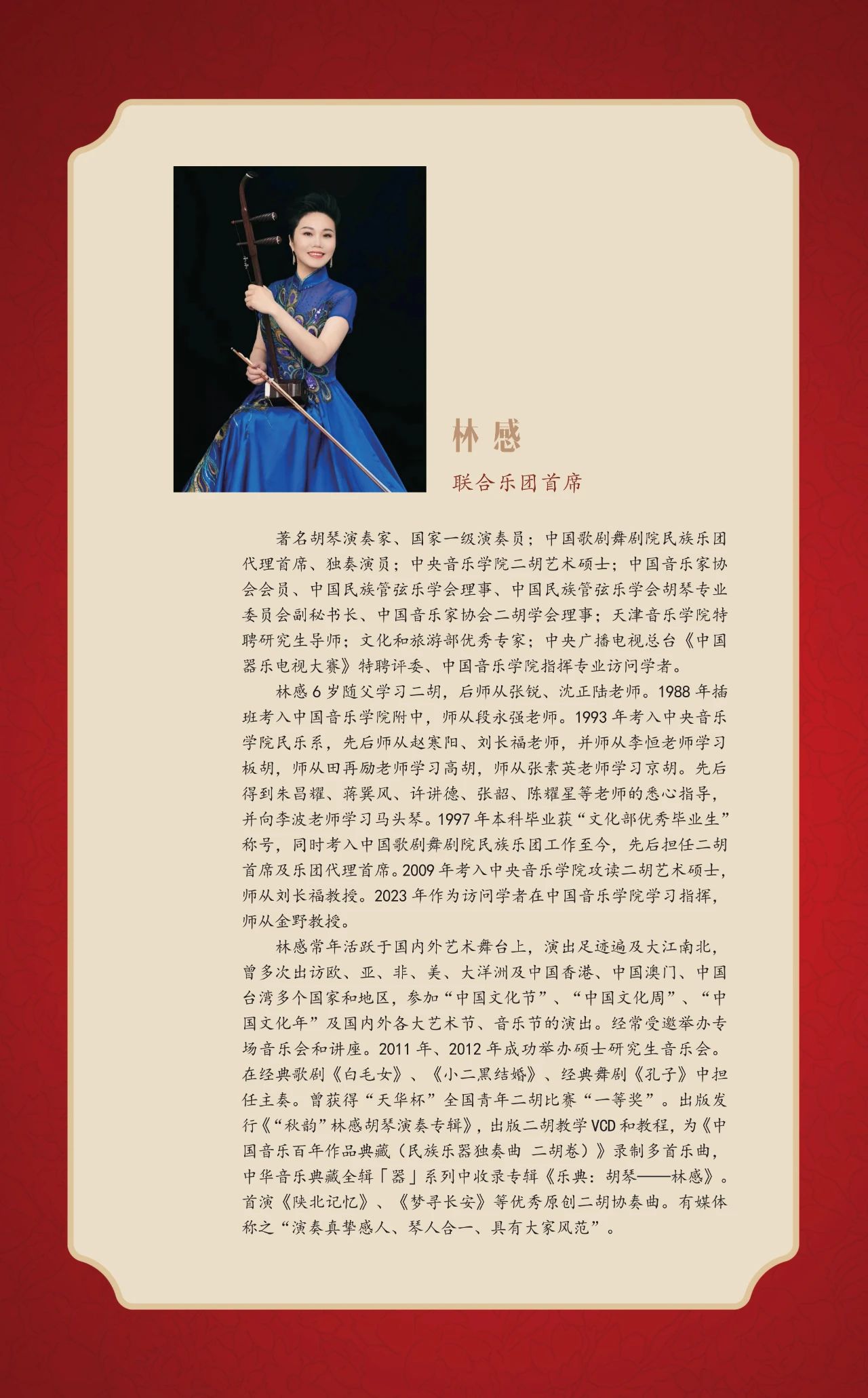 本场音乐会联合乐团首席林感发言