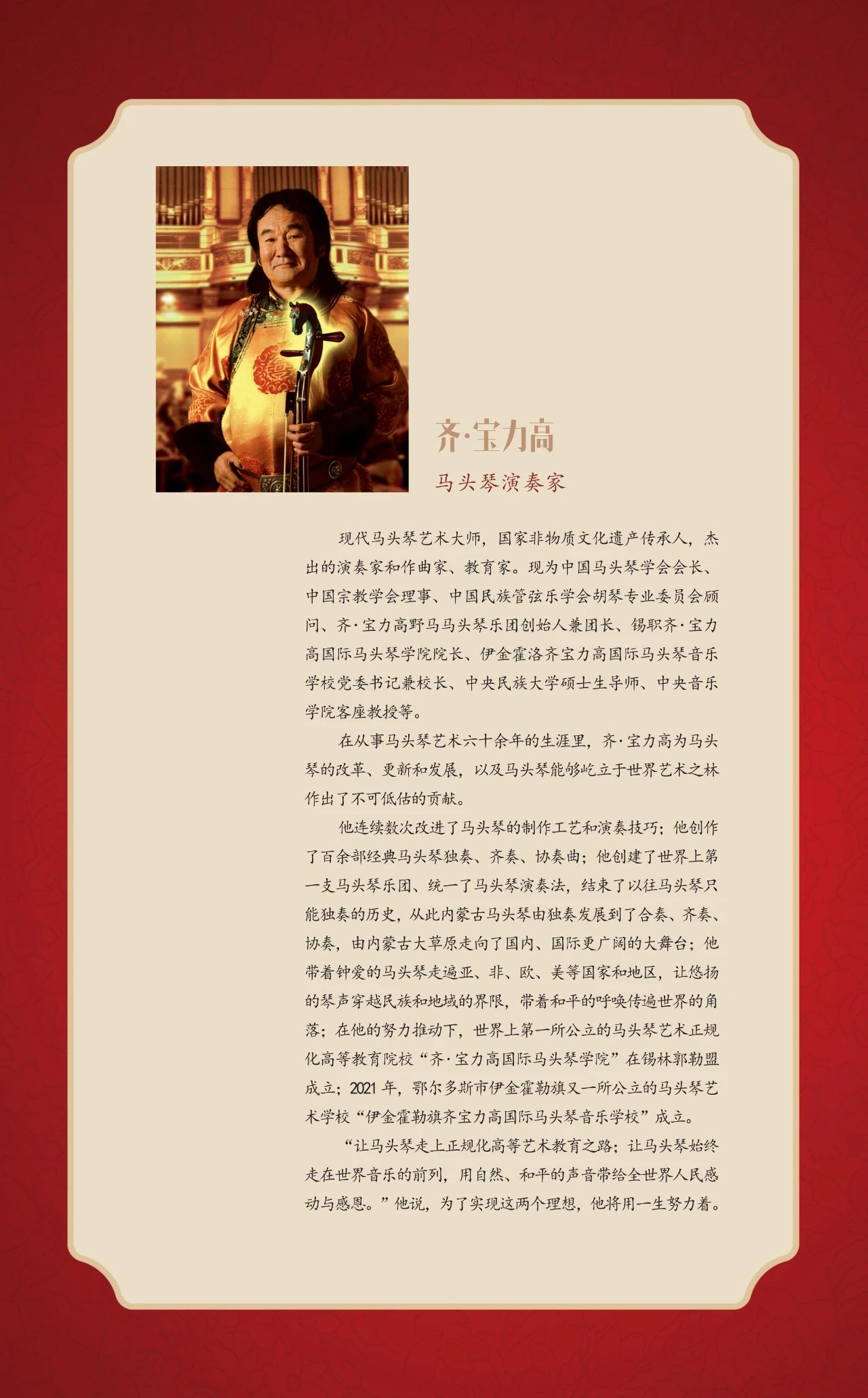 马头琴演奏家齐·宝力高发言