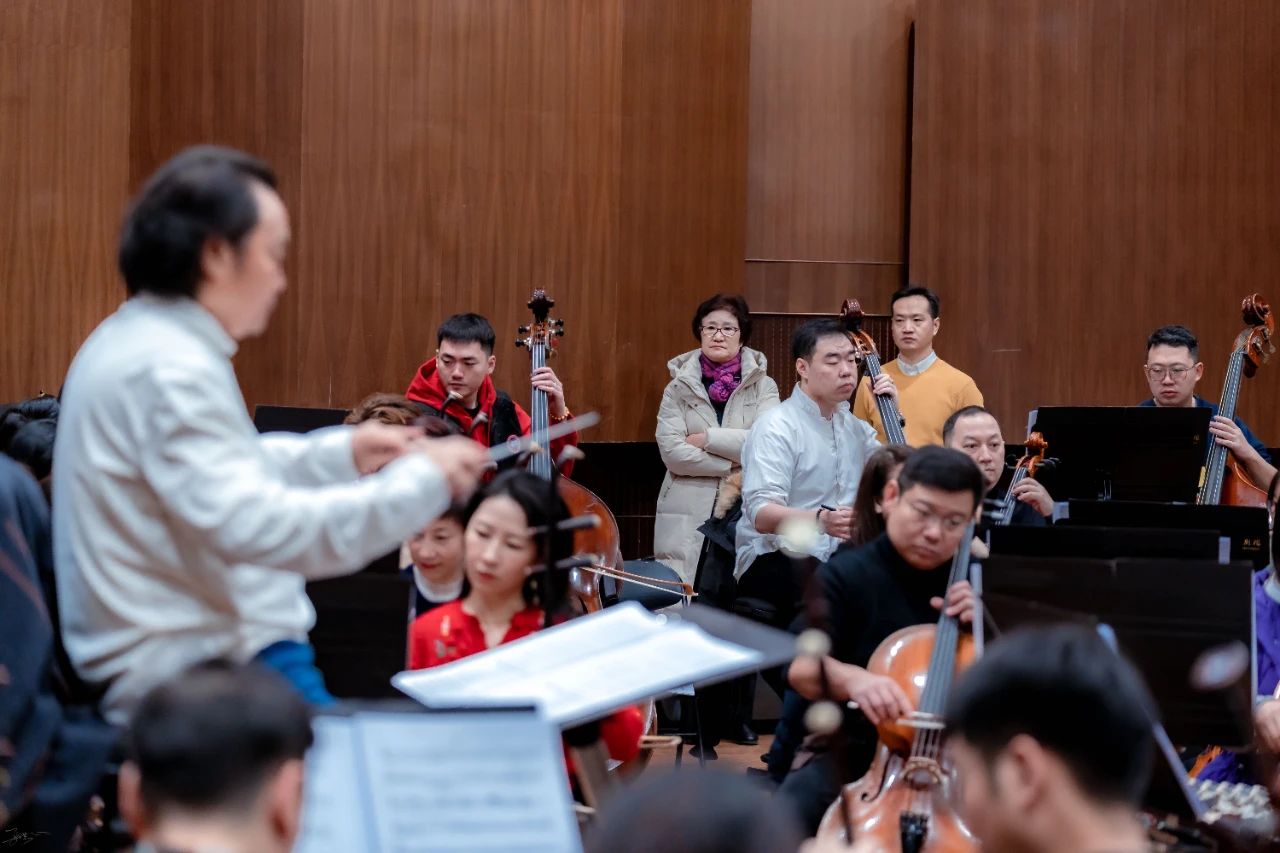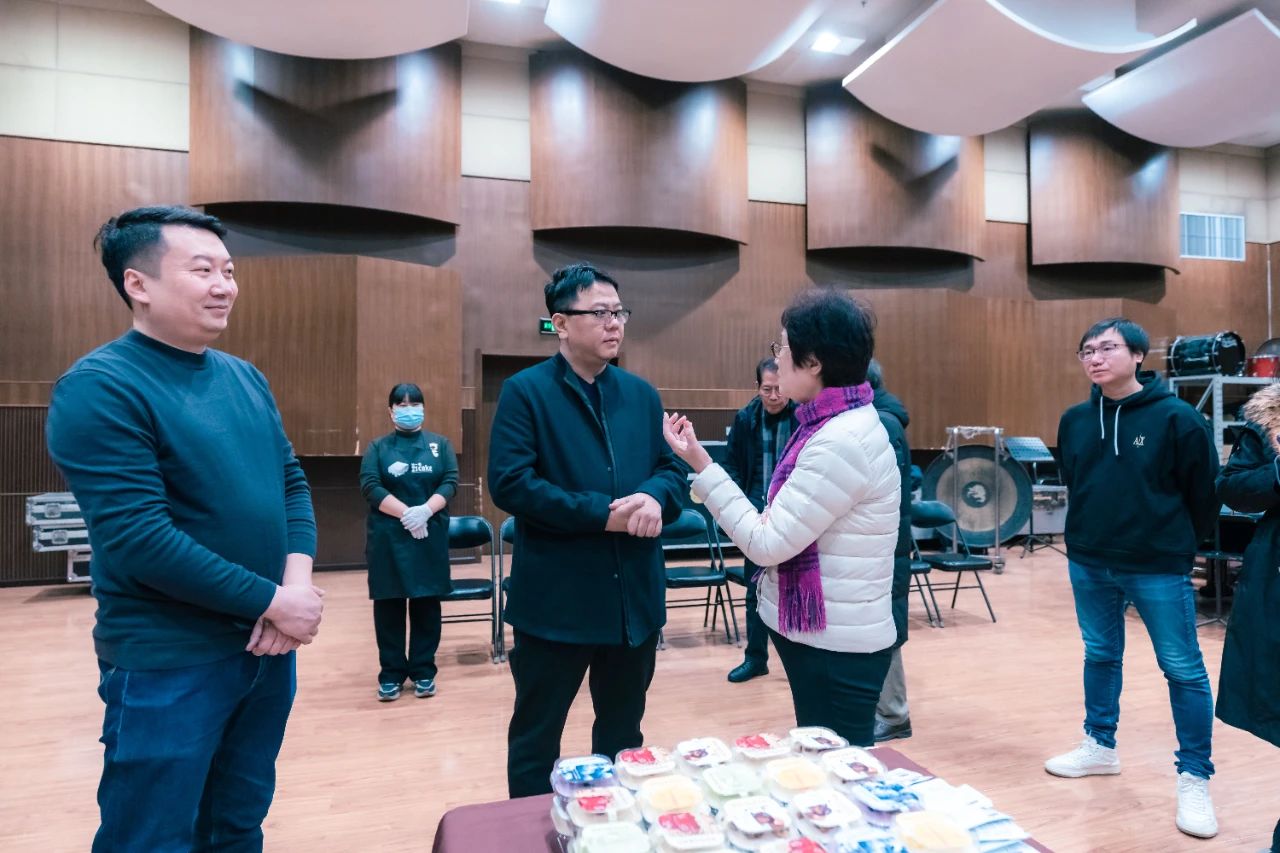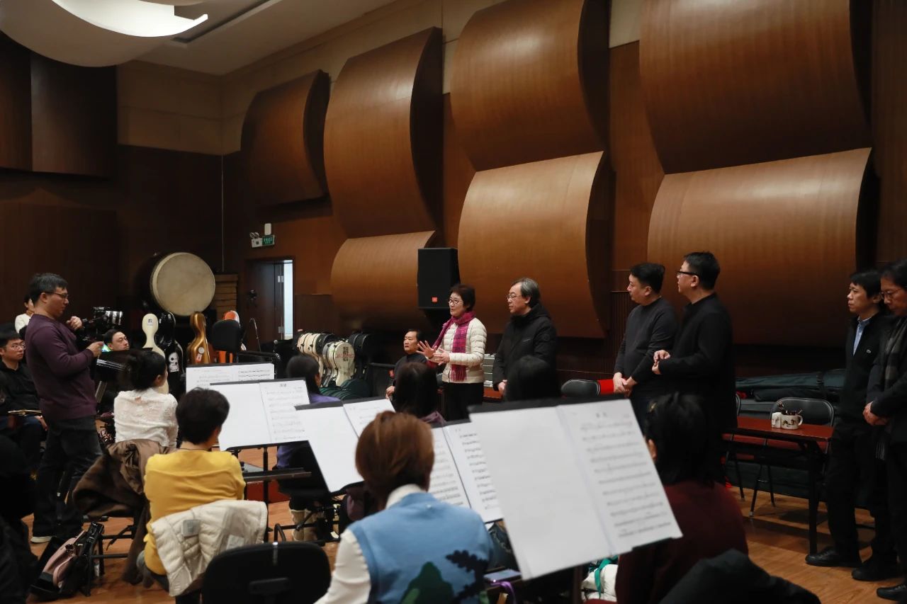 联合乐团在中国歌剧舞剧院民族乐团排练,吴玉霞会长、赵东升副会长兼秘书长及各团领导到场动员。