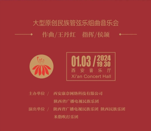 2024年1月3日,由陕西省广播电视民族乐团和陕西民族乐团联合西安康奈网络科技有限公司主办的“致敬最美城市建设者——大型民族管弦乐组曲《永远的山丹丹》”公益音乐会将在西安音乐厅奏响。