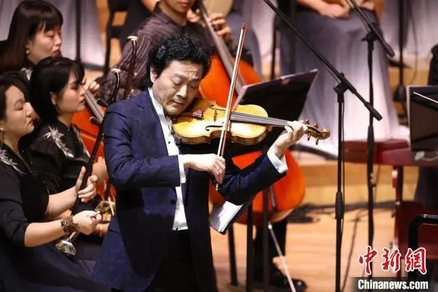 随后,小提琴演奏家吕思清携手乐团,奏响由著名作曲家赵季平创作、罗伟伦移植的《第一小提琴协奏曲》。此次是该曲由交响乐进行民族乐团移植后的首次亮相,通过东方化的表达方式辅以西方音乐技法,抒写中国民族精神内核。现场观众在一片悠扬舒畅的旋律中感受中西方文化的交融,体味哲理思辨的乐思。