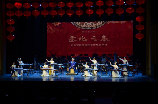 值得一提的是,作曲家隋利军更为本场音乐最新创作了四首音乐作品,群笛与乐队《鹤鸣之舞》、让观众眼前仿佛出现了扎龙湿地,芦苇荡漾,大群丹顶鹤引吭高歌的场景;古琴协奏曲《文君操》是国内民族管弦乐作品中第一首,以古代琴谱打谱原创旋律为题材、古琴演奏与琴歌演唱融合一体的古琴协奏曲。由隋利军与古琴演奏家王永亮共同作曲,由隋利军先生完成管弦乐队配器,古琴协奏曲配上琴歌,给观众一种耳目一新的感觉。民族管弦乐合奏曲《我爱大东北》以及八音古筝组合《噶仙洞梦幻》,充分展示了东北地方音乐的色彩和黑土地大自然的美丽风光,让民族音乐文化重新焕发生机。