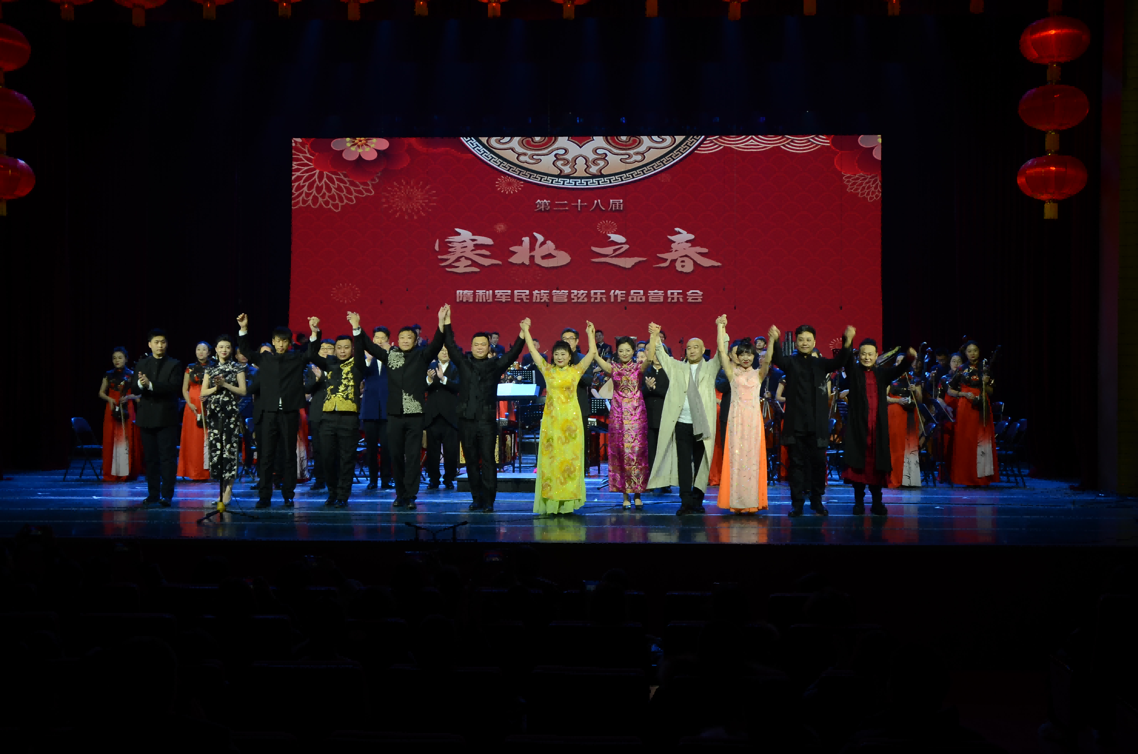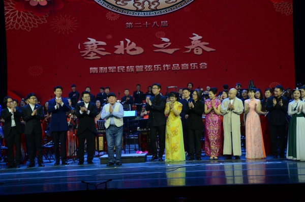 吴玉霞会长在讲话中表示:随着“尔滨”热的不断升温,奔赴一场充满浓郁气息的第28届《塞北之春》隋利军民族管弦乐作品音乐会理所当然。昨晚的黑龙江省歌舞剧院音乐厅群情激昂、热情四溢,他是中国音乐文化民间深耕滋养的明证,也是热情、执着、坚守的艺术家身体力行努力回报的文化溯源。当熟悉的“月牙五更”在音乐厅奏响,“塞北之春”隋利军民族管弦乐作品音乐会拉开了序幕。作为黑土地文化的传导者、黑龙江省民族音乐创作代表性人物、满族音乐理论研究专家、著名作曲家隋利军先生,带着浓浓的关东情思,传扬着民俗文化。东北风格的二人转音乐,耳熟能详的摇篮曲、欢愉热情的秧歌调,伴随二胡、古筝的细腻婉约,板胡、唢呐的铿锵热忱,以及古琴、琵琶的厚重古朴,尤以群笛“鹤鸣之舞”所倡导的环绕立体声音效以及八音古筝“嘎仙洞梦幻”多调多声部与打击乐 的朴实民风,仿佛让我们置身于自然之美的原生境地。展现的同时意味着接受检阅。 隋利军先生是一位有理想、有志向、有追求的作曲家、音乐活动家,他的音乐作品、艺术理想、精神情怀将深深影响并激励年轻的新一代民乐艺术创作者,那些“记得住”“留得下”的作品与耐人回味的曲调,是我们承继传统,不断创新的根源,希望广大的民乐从业者,在为民乐事业发展贡献的同时,懂得“传承不守旧,创新不离根”的箴言。