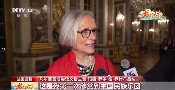 凡尔赛宫博物馆文物主管 玛丽·罗尔·德·罗什布吕钠:这是我第一次欣赏到中国民族乐团和法国管弦乐团联袂演出,而且乐器种类如此丰富,我也感觉非常美妙。