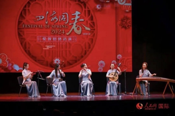 “四海同春”慰侨访演团欧洲团2月11日至12日在伦敦特拉法加广场和皇家德鲁里巷剧院分别举行两场演出,由玖乐室内乐组合演奏的《步步高》《赛马》等熟悉旋律在耳边响起,让不少异乡人产生情感共鸣。