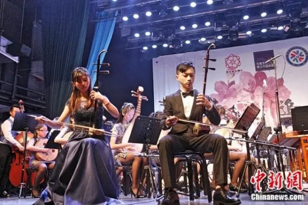 2018年7月,台湾新北市三重区先啬宫国乐团与北京海淀区青少年活动管理中心民乐团、上海金山区学生民乐团,在北京同台演奏民乐,传承中华文化。陈小愿 摄