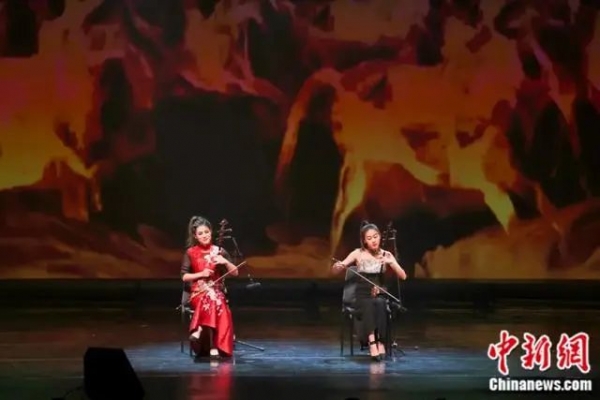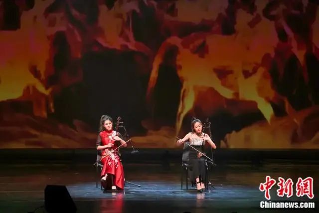 “四海同春·华星闪耀”2024年加拿大春节联欢晚会多伦多专场演出举行,中加青年演员共同演奏二胡名曲《赛马》。余瑞冬 摄