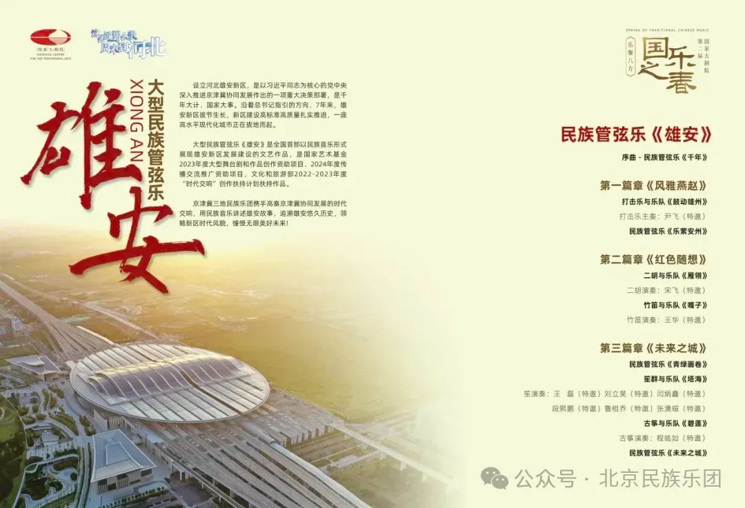 京津冀三地民族乐团以国乐之声展现京津冀协同发展十周年的辉煌成就,描绘雄安新区设立七周年的蓬勃图景。