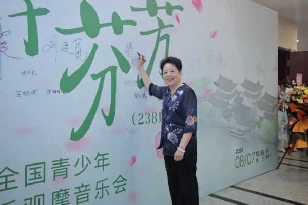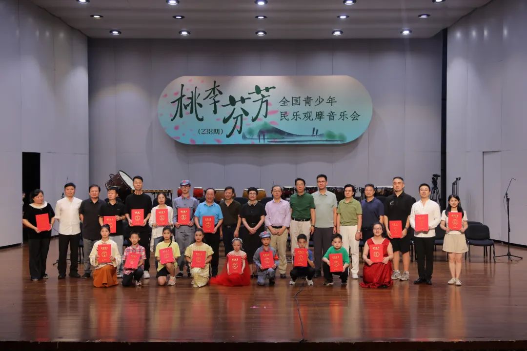 本次“桃李芬芳”浙江考区全国青少年民乐观摩音乐会由中国民族管弦乐学会指导,浙江省文化广电和旅游厅社会组织委员会和浙江省民族管弦乐学会共同主办,华音网全程协办。音乐会自6月面向浙江省内各考级培训机构征集展演作品,7月组织作品审核。在多方支持和各考级单位的积极响应下,截止7月5日,主办方共收到47首参展作品。评审团队依据多重考量,最后从中遴选出17个节目列入正式音乐会演出,累计参演人员400余人。值得一提的是,本场音乐会的所有小演奏家们都是历年通过浙江省民族管弦乐学会的考级端口,参加中国民族管弦乐学会学会考级并获得五级以上的优秀考生。可以说,本场音乐会不仅是一场高质量的青少年民族器乐作品盛会,更是一场新时代“美育浸润”要求下社会考级工作的优秀成果汇报。演出当晚中国民族管弦乐学会学会会长吴玉霞,副会长兼秘书长赵东升,浙江省民族管弦乐学会会长刘建宽,会名誉会长蒋国基,顾问傅丹,副会长兼秘书长吴樟华,中国民族管弦乐学会驻会副秘书长宋阳,党支部副书记、考级工作小组副组长田龙,办公室副主任、考级工作小组副组长刘全国,浙江省民族管弦乐学会驻会副秘书长朱宝华等领导和嘉宾出席了当晚的音乐会。