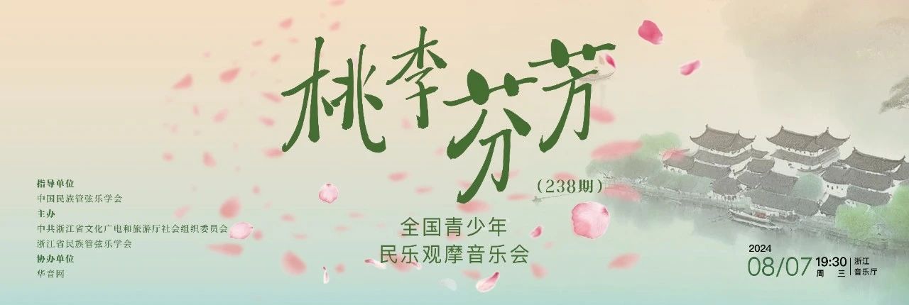 8月7日,立秋,万物从这一天开始从繁茂生长趋于成熟。这一天,“桃李芬芳”(第238期)全国青少年民乐观摩音乐会的小演奏家们用他们的“吹拉弹打”为杭城的观众呈现了一台规模质量可观,尽显新时代风貌的青少年民乐盛典。