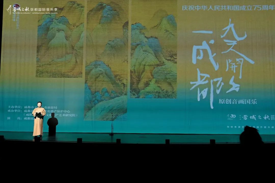 《九天开出一成都》原创音画国乐9月底在成都城市音乐厅震撼上演。本次音乐会通过乐剧的形式,以建设世界文化名城、发展非遗传统文化为背景,通过演员、舞台与场景所构成的视听融合,呈现出描绘成都这一具有灿烂文明史,承载着千年文脉古城的作品。