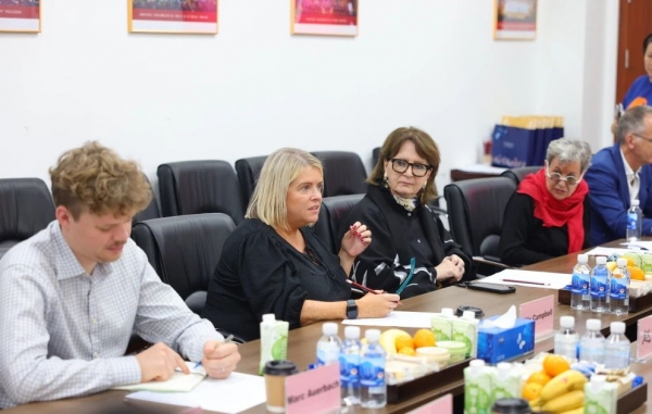 在随后的座谈会上,中央民族乐团团长赵聪对乐团的情况进行了详细介绍并分享了乐团在国际舞台上的演出经验以及乐团未来的巡演计划。中国对外演出有限公司大型活动部总监朱丹对欧洲艺术机构负责人一行的基本情况进行了介绍,双方就如何将中国民族音乐剧目更好地推介到欧洲市场进行了深入交流,赵聪团长对欧洲艺术机构代表团的到访表示感谢,她表示中央民族乐团一直致力于用民族音乐向世界讲述中国故事,介绍中国文化,期待未来能够与欧洲艺术节、剧院等机构建立更紧密的合作关系,共同推动中欧文化交流与合作向更深层次、更广领域发展,代表团一行对中央民族乐团的演出质量给予了高度评价,双方对未来的合作表达了更多积极的展望。此次交流不仅加深了欧洲艺术节、艺术机构对中国民族音乐的了解,也为双方未来的合作奠定了坚实基础。