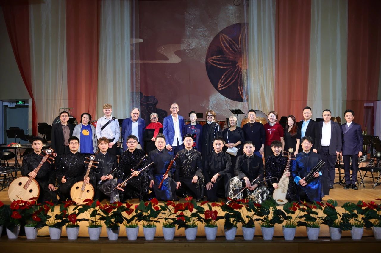 调研过程中,代表团欣赏了中央民族乐团的经典曲目《丝绸之路》和男子室内乐团“青衫渡”的代表作品《满江红》。演出结束后,代表团与“青衫渡”成员进行了深入的互动交流。“青衫渡”成员分别展示了二胡、笛箫、阮、唢呐等多种民族乐器,中国民族乐器的独特音色引起了代表团的极大兴趣。