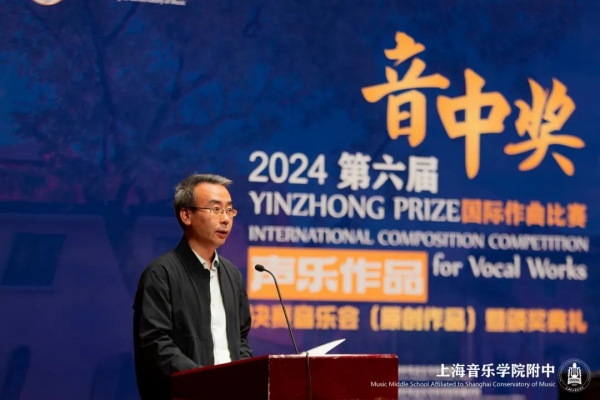 2024年11月,第六届“音中奖”国际作曲比赛(决赛)在上海成功举办,吴学霆书记与丁缨校长莅临两场决赛音乐会现场并致辞,音乐会由作曲学科教师居文沛主持。