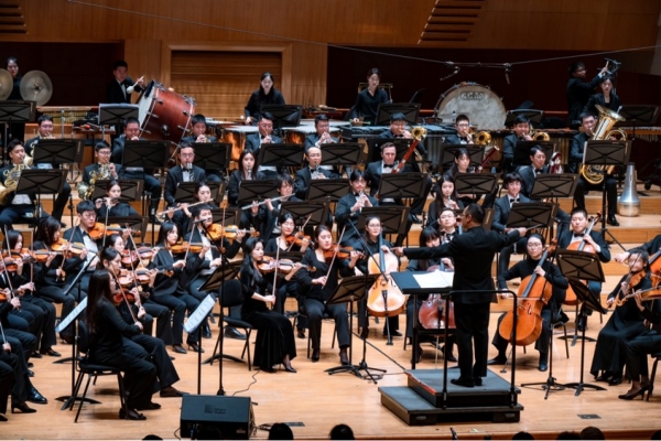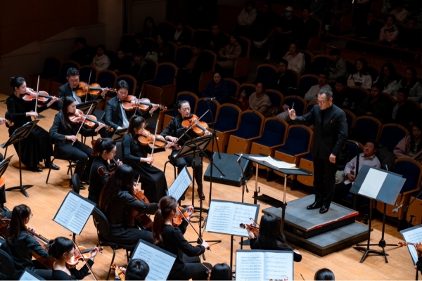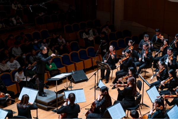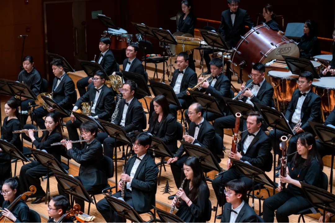 在指挥袁丁的精准引领下,乐团以饱含深情的演奏,将每一个黑白音符重新注入色彩,满载着对过往岁月的深情回望,对未来的勇敢展望。在乐曲的推进中,打击乐的动感、铜管的暖意与弦乐的沉思将听众带入了那个满载温馨的回忆世界,感悟着时光流转与人生变迁。而结尾之际乐队的人声飘出,更是于声声歌吟中再度携手回望,为中国音乐学院60周年征程献上了一曲温暖而真挚的颂歌。