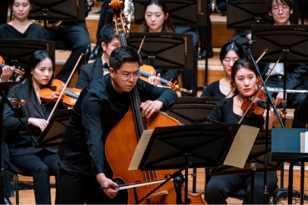 低音提琴狂想曲《醉花间》,来自作曲系副教授、管弦乐法教研室主任温展力,中国音乐学院博士研究生、中国首位低音提琴专业博士研究生康宁担任低音提琴演奏。