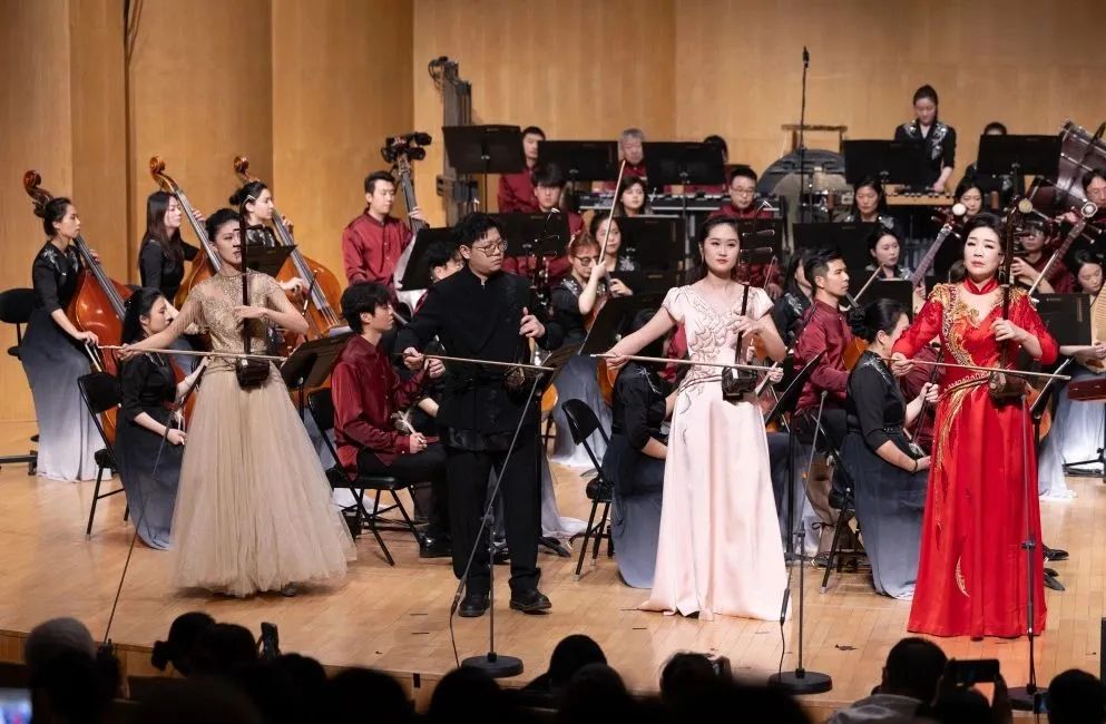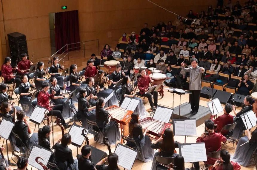 中华民族是守正创新的民族。民族音乐的守正创新离不开一代代音乐人前辈提携后辈,形成长江后浪推前浪、代有新人领风骚的生动局面。从本场音乐会来看,每支曲目均由国乐名家携手音乐院校的获奖学子共同演绎,这些年轻的演奏家们从音乐学院附中学生,到音乐院校在读本科生、硕博士研究生,均自小师从名家,得专业教师正确指引,在国内各大音乐比赛或展演中获得过重要奖项,已然初露锋芒。如参加演奏二胡与乐队《巾帼》的获奖选手谭欣,目前中国音乐学院研究生三年级在读,师从二胡名家宋飞,现今已是第十四届中国音乐金钟奖得主,入选中国音乐学院“拔尖人才培养计划”。