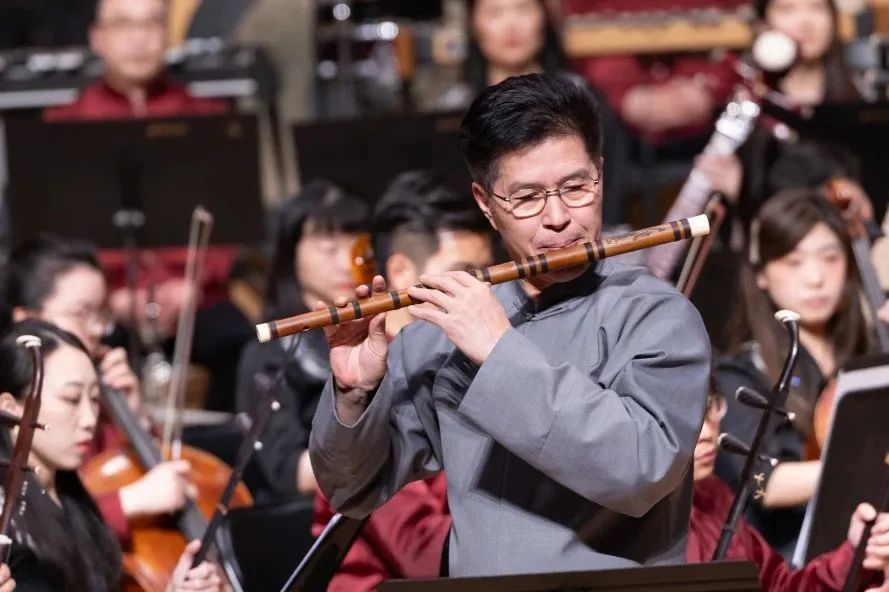 再如演奏竹笛与乐队《咏春》的中国音乐学院教授、演奏家张维良,被认为是我国最具创新精神的民族吹管器乐笛、箫、埙演奏家及作曲家、教育家。他与张艺谋、陈凯歌等合作担任电影《菊豆》《大红灯笼高高挂》《霸王别姬》的音乐创作并演奏,借助电影的魅力将中国民族音乐推向国际,在守正创新中另辟蹊径地实现了跨文化传播。他的演奏笛声悠悠,旋律如清风霁月轻盈流畅,令人叹为观止。
