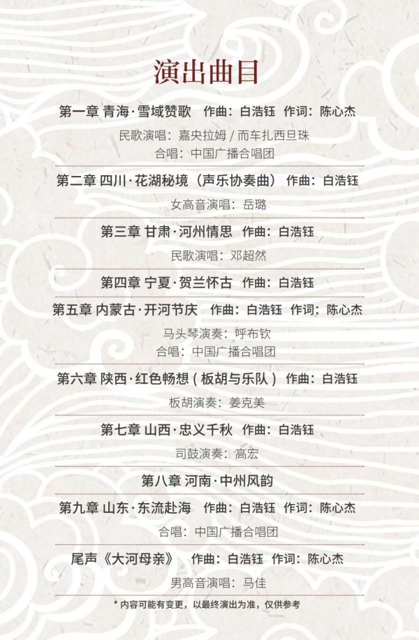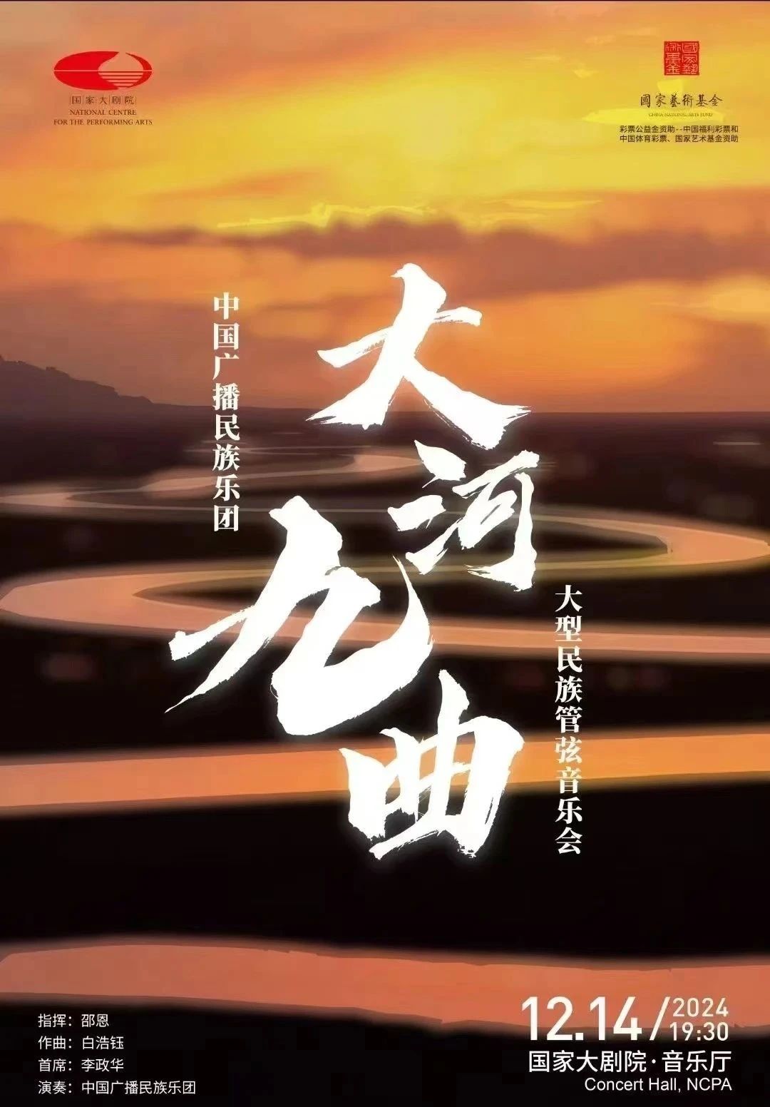 12月14日,国家艺术基金2023年度大型舞台剧和作品创作资助项目——大型民族管弦乐《大河九曲》在国家大剧院隆重上演。由中国广播艺术团驻团作曲家白浩钰作曲,武汉音乐学院青年民族音乐学学者陈心杰作词。