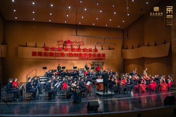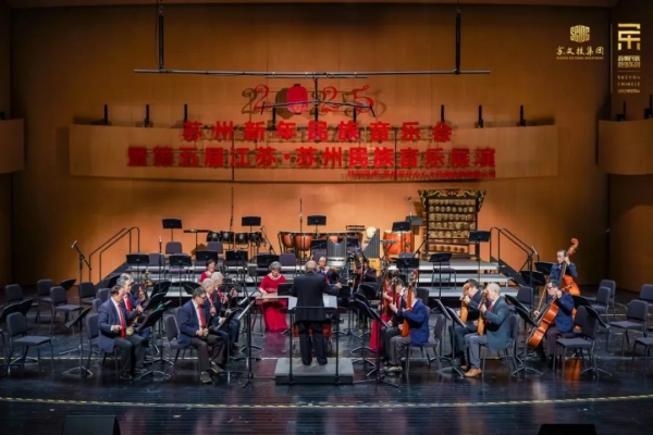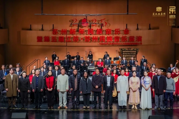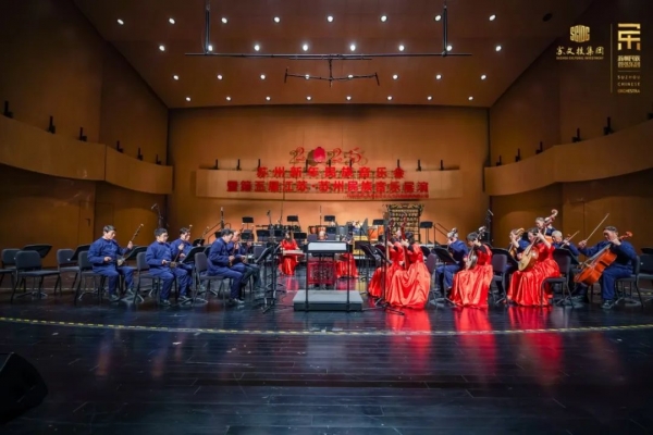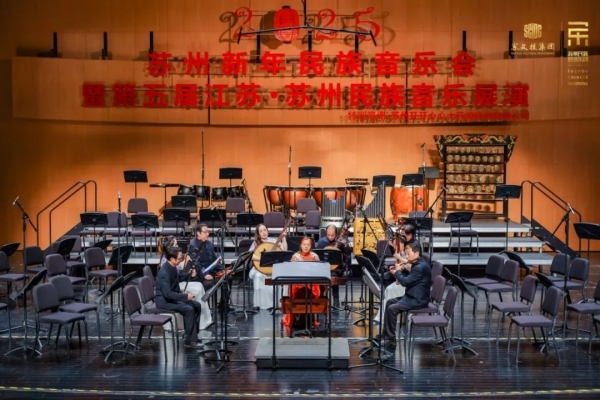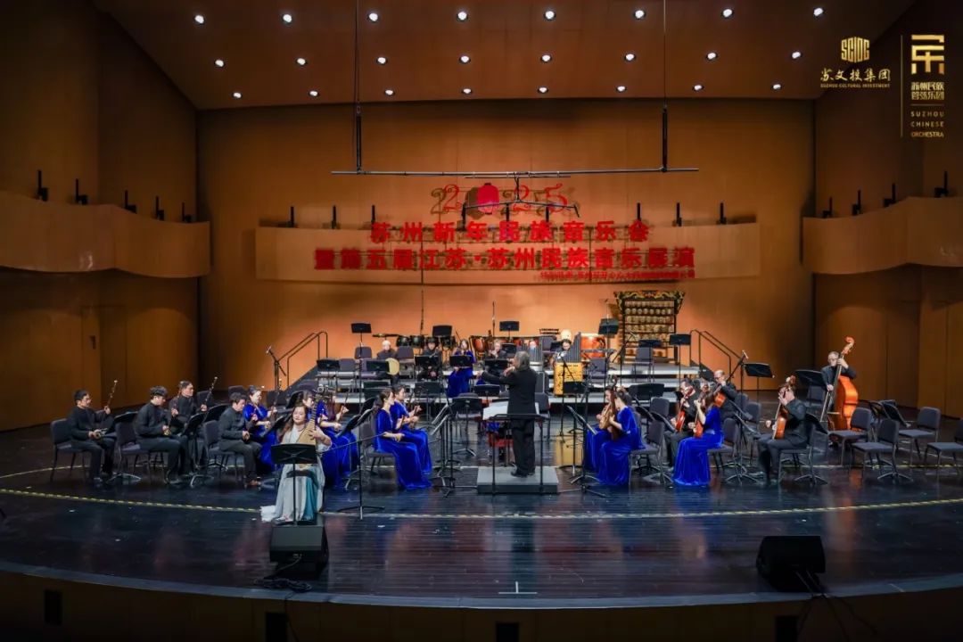 丝弦和鸣,歌咏盛世;鼓乐喧天,共庆丰年。为深入贯彻学习习近平文化思想,进一步弘扬民族音乐文化、繁荣江南丝竹艺术,培育苏州民族音乐艺术人才沃土,12月22日,2025苏州新年民族音乐会暨第五届江苏·苏州民族音乐展演在苏州民族管弦乐团音乐厅举办。