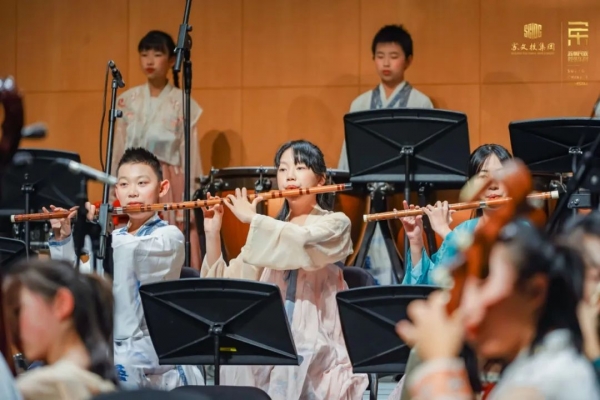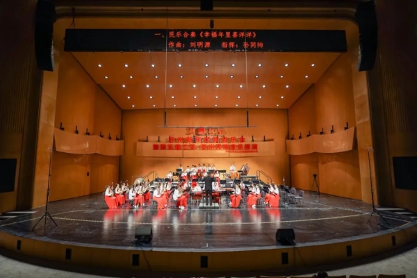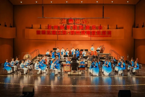 22日下午,青少年专场音乐会为展演拉开帷幕。南京师范大学相城实验小学民乐团、苏州工业园区第二实验小学、苏州科技城少年民族乐团等11个优秀青少年团体带来了十余个民族音乐作品。民乐合奏《幸福年里喜洋洋》率先开场,重现人们欢度新年的场景。随后,意境幽雅的《花好月圆》《谷渎春韵》,气势恢宏的《破阵乐》《龙虎斗》,节奏明快的《欢沁》《云宫迅音》《嗡喽咪》,彰显齐鲁豪杰风采、姑苏明媚风情、青春奋斗精神的《好汉歌》《姑苏情》《青春》等曲目轮番上演,张力十足、特色各异的演奏,诠释了新时代苏州青少年朝气蓬勃的青春姿态,更展现了他们对民族音乐的传承。