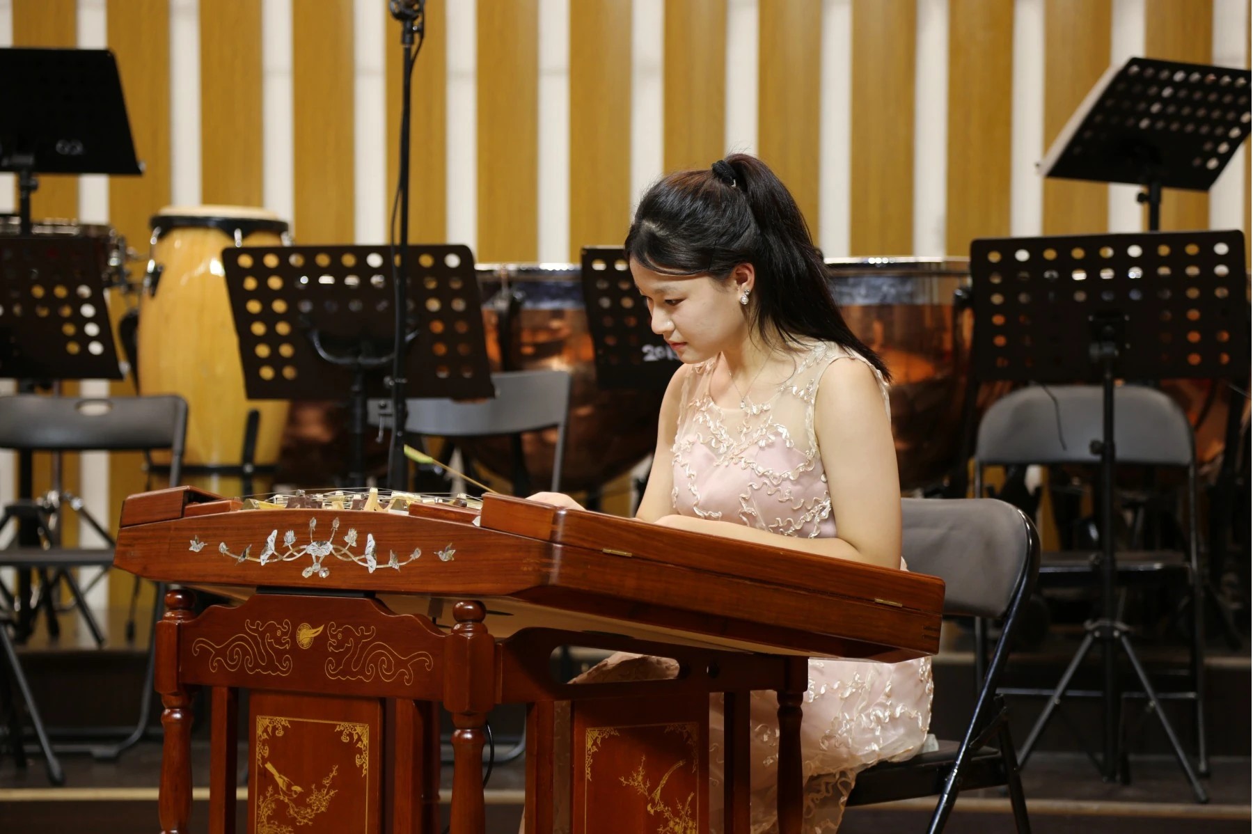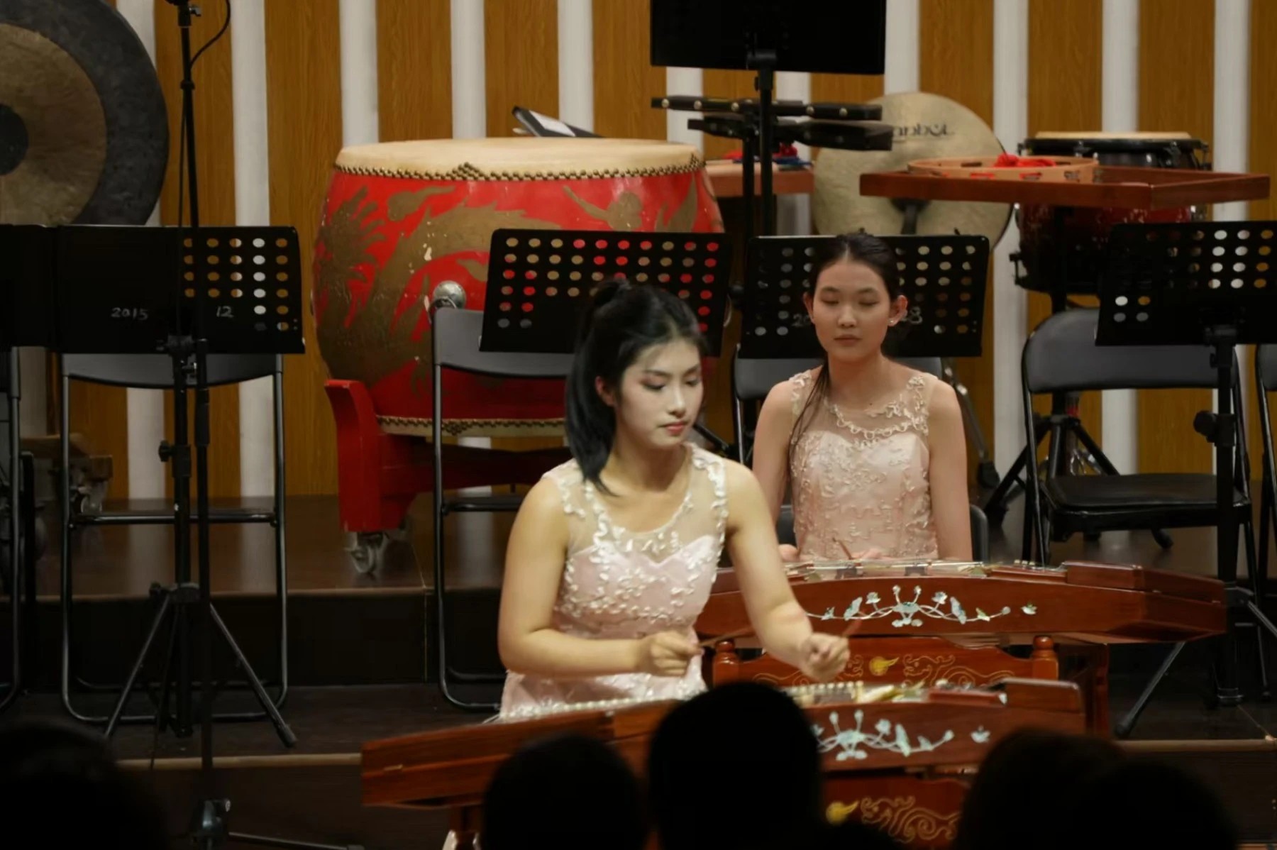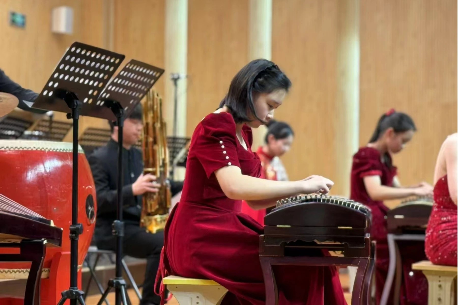 音乐会上,长征中学民乐团演奏了《征程》《红楼梦组曲》《狮城序曲》《龙腾虎跃》等乐曲,大鼓、竹笛、二胡、琵琶、古筝等民族乐器齐上阵。