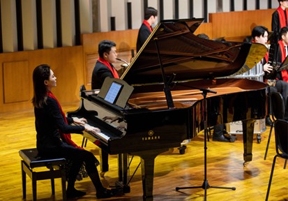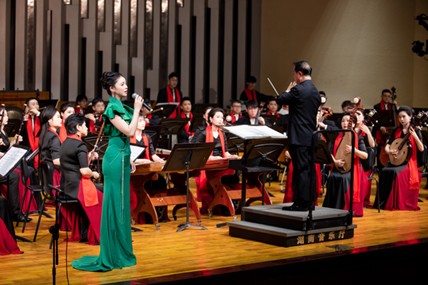 在欢乐祥和的气氛中,温润几代人记忆的经典作品《金蛇狂舞》、《良宵》等重新配器全新演绎;潇湘三部曲之二——原创民族音乐会《长歌潇湘》中的优秀乐曲《大梦寥廓》《湘江北去》奏响湖湘儿女的自豪;《青青思念》《花妖》《父亲的草原母亲的河》《一杯美酒》等曲目传递着温情与热爱;双古筝与乐队《律动》,笙与乐队《遥天乐》让人感受着民族乐器的魅力;音乐会在刘文金先生的《我的祖国》中推向了高潮,个人的情感与家国情怀融为一体,在音乐中升华。