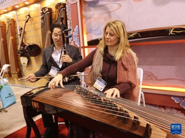 不少海外参观者对中国乐器给予高度评价。在展区试弹古琴的赫兰·安德森是一名音乐治疗师。她说,中国民族乐器是中国博大精深的传统文化载体,其优美的音色和演奏旋律充满东方韵味,令她的很多顾客心旷神怡,起到很好的疗效。