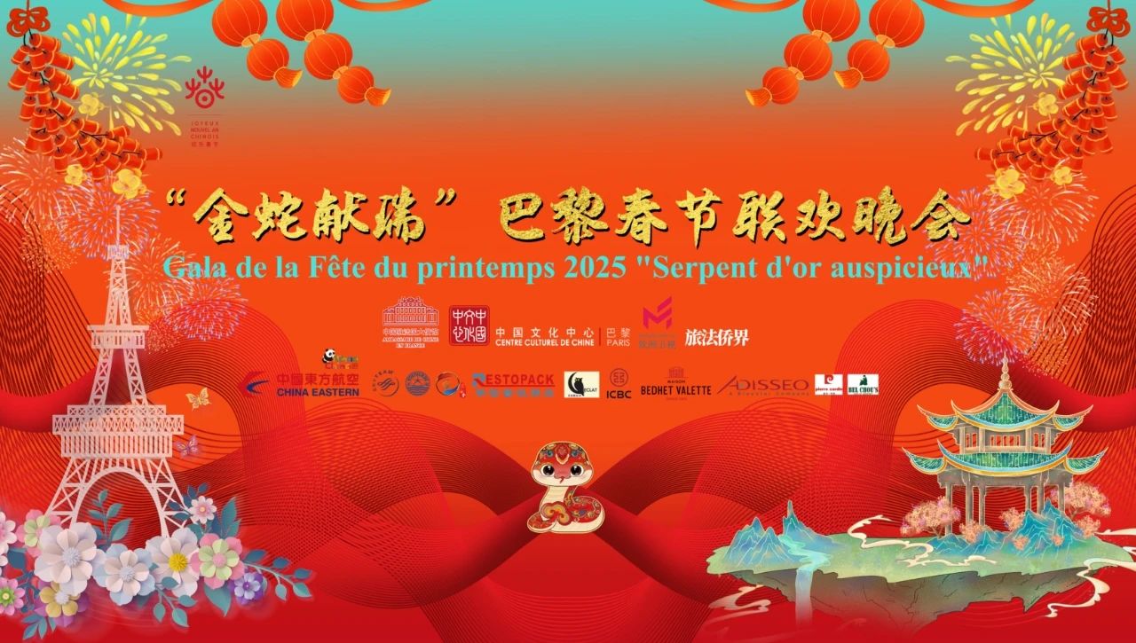 “金蛇献瑞报春来,舞动塞纳祥云开,欢歌笑语中国年,中法同庆乐开怀。”2025年1月20日晚,作为巴黎2025“欢乐春节”系列活动启动仪式,由巴黎中国文化中心、欧洲卫视主办,中国驻法国大使馆支持,旅法侨界、众多企业机构鼎力协办的“金蛇献瑞”巴黎春节联欢晚会在巴黎莫加多尔(Mogador)剧院隆重拉开帷幕。