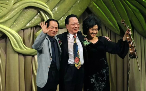 ▲2009年,何占豪、陈钢、俞丽拿齐聚第26届“上海之春”,为《梁祝》50周岁“庆生”(上图)。2019年第36届“上海之春”闭幕式上