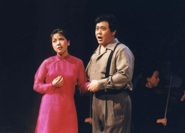 ▲2001年第19届“上海之春”,上海歌剧院歌剧《雷雨》首演,魏松(右)扮演周萍,董明霞(左)扮演四凤。