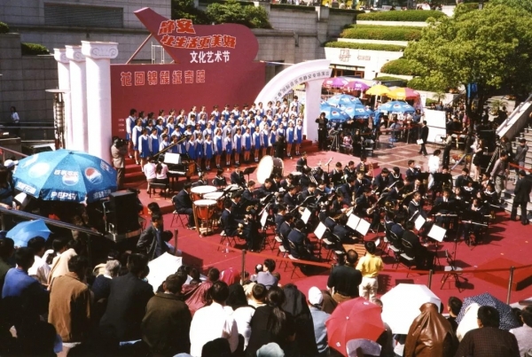 ▲谁说好音乐只能在音乐厅欣赏?2003年的第21届“上海之春”将音乐会办到了社区广场。