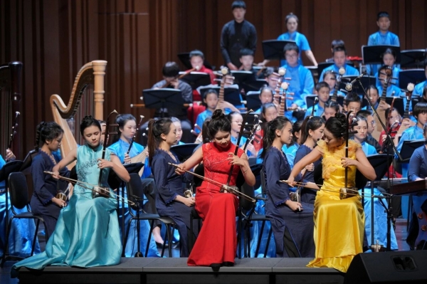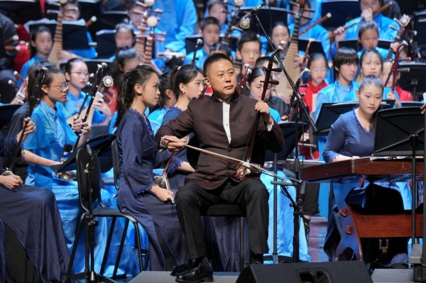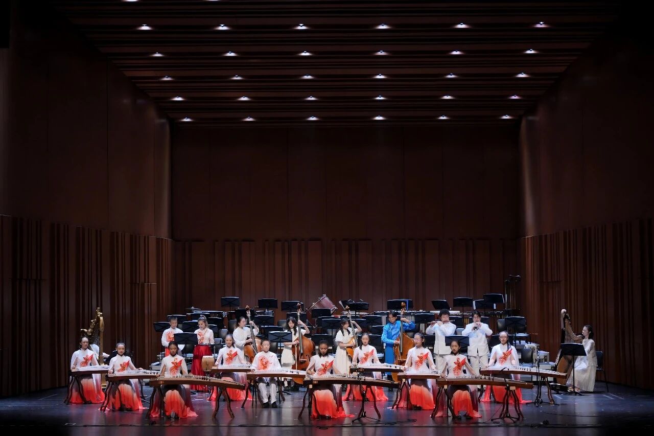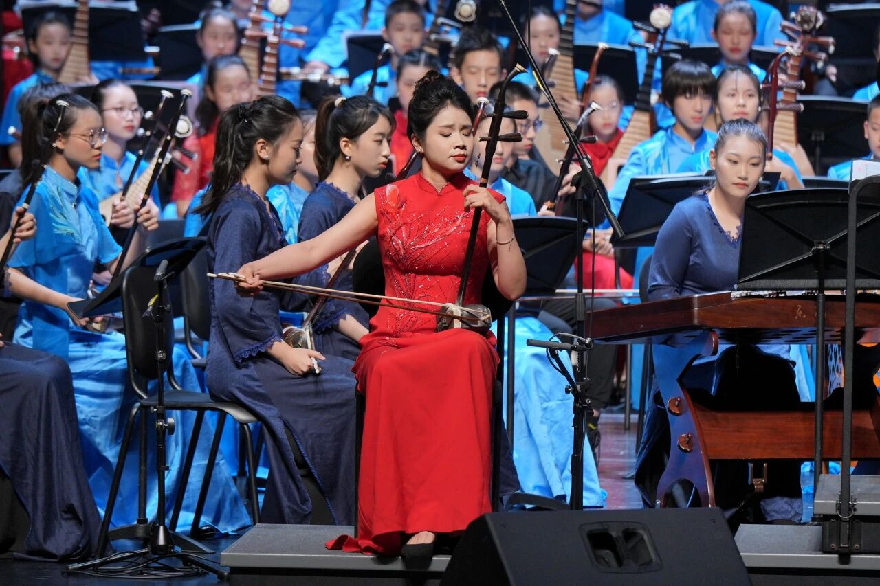 音乐会星光熠熠。由上海音乐学院在读博士生朱婧独奏、中央芭蕾舞团交响乐团首席指挥刘炬执棒的《洪湖主题随想曲》,满含深情地奏出韩英“生我是娘,教我是党”的赤诚。二胡版本的《黄河协奏曲》将演出气氛推向高潮,那象征着中华民族坚韧不屈的滔滔河水,在新时代青少年的指尖焕发生机。民乐系教授汝艺倾情演绎《长城随想》第二、四乐章,《烽火操》的狼烟四起与《遥望篇》的和平颂章,让聆听者越过千年烽烟,与历史和未来同频共振。压轴乐曲《红旗颂》由民乐系吴强教授指挥,青少年乐团用磅礴声势,让红旗在民族音乐的音符里再次升起。