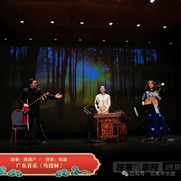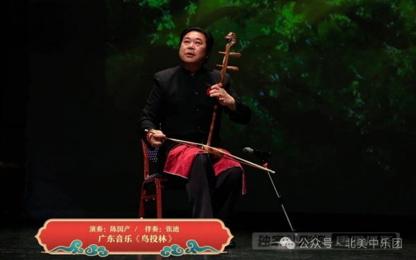 广东音乐单元别具特色,首先由陈国产老师带来高胡独奏《鸟投林》,曲调灵动、情绪欢快。陈老师弓弦游走间音色圆润、气韵生动,一气呵成的演绎博得观众热烈掌声。