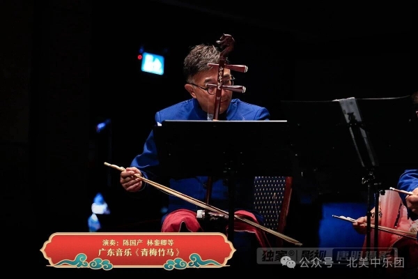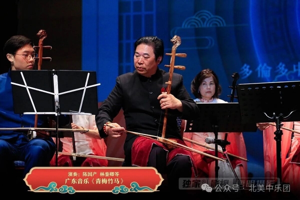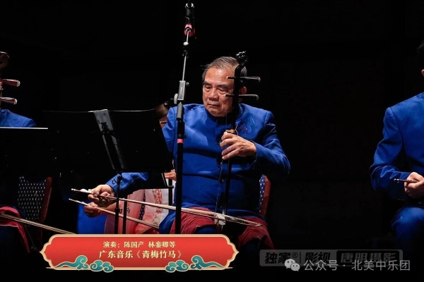 随后高胡齐奏《青梅竹马》由陈国产、林銮卿、贾雪英、丁立明、冯炳、黎炳华、林永祥共同演奏,七位琴师的合奏默契非凡,曲调轻盈欢快,音色层次分明,将岭南韵味发挥得淋漓尽致。