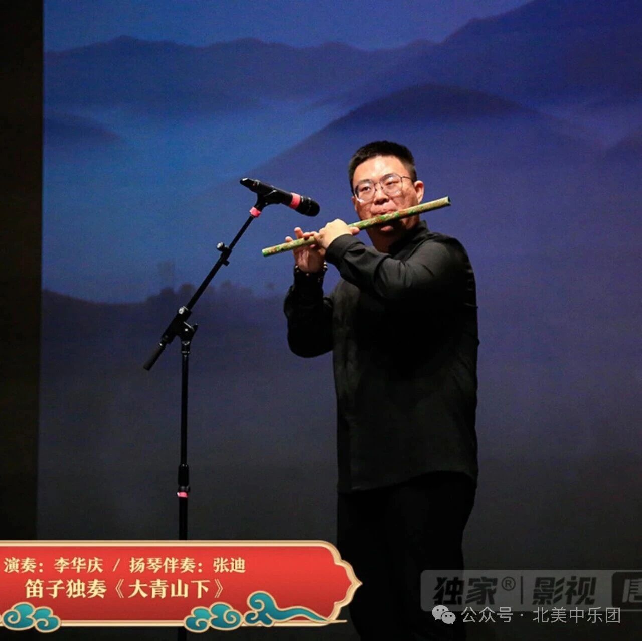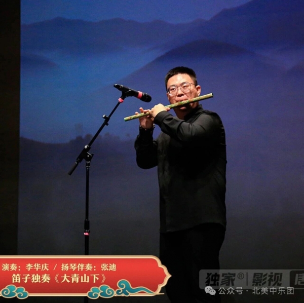 随后,笛子独奏《大青山下》由李华庆老师演奏、张迪老师扬琴伴奏。笛声苍劲悠远,旋律高亢豪放,描绘出北疆壮阔的山河气象。李老师的气息稳健、指法灵巧,音色丰富多变,将曲中辽阔与深情表现得淋漓尽致,博得观众一片“好!”声。