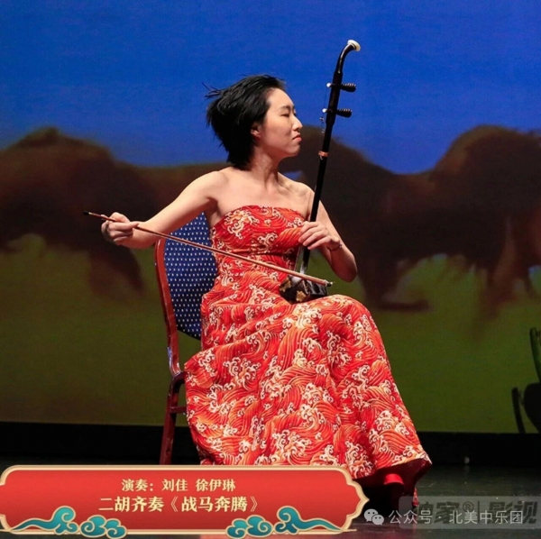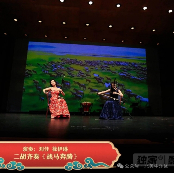 紧接着二胡齐奏《战马奔腾》由刘佳与徐伊琳联袂演绎,双弓共舞、气势如虹,犹如千军万马驰骋原野,现场观众屏息聆听,随后掌声雷动、欢呼声不绝。