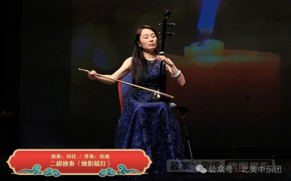 二胡独奏《烛影摇红》由刘佳老师演奏,张迪扬琴伴奏。乐曲婉转动人、情意绵长,刘佳老师的运弓细腻流畅,低吟浅诉中充满深情,令观众沉浸在古意盎然的旋律之中。