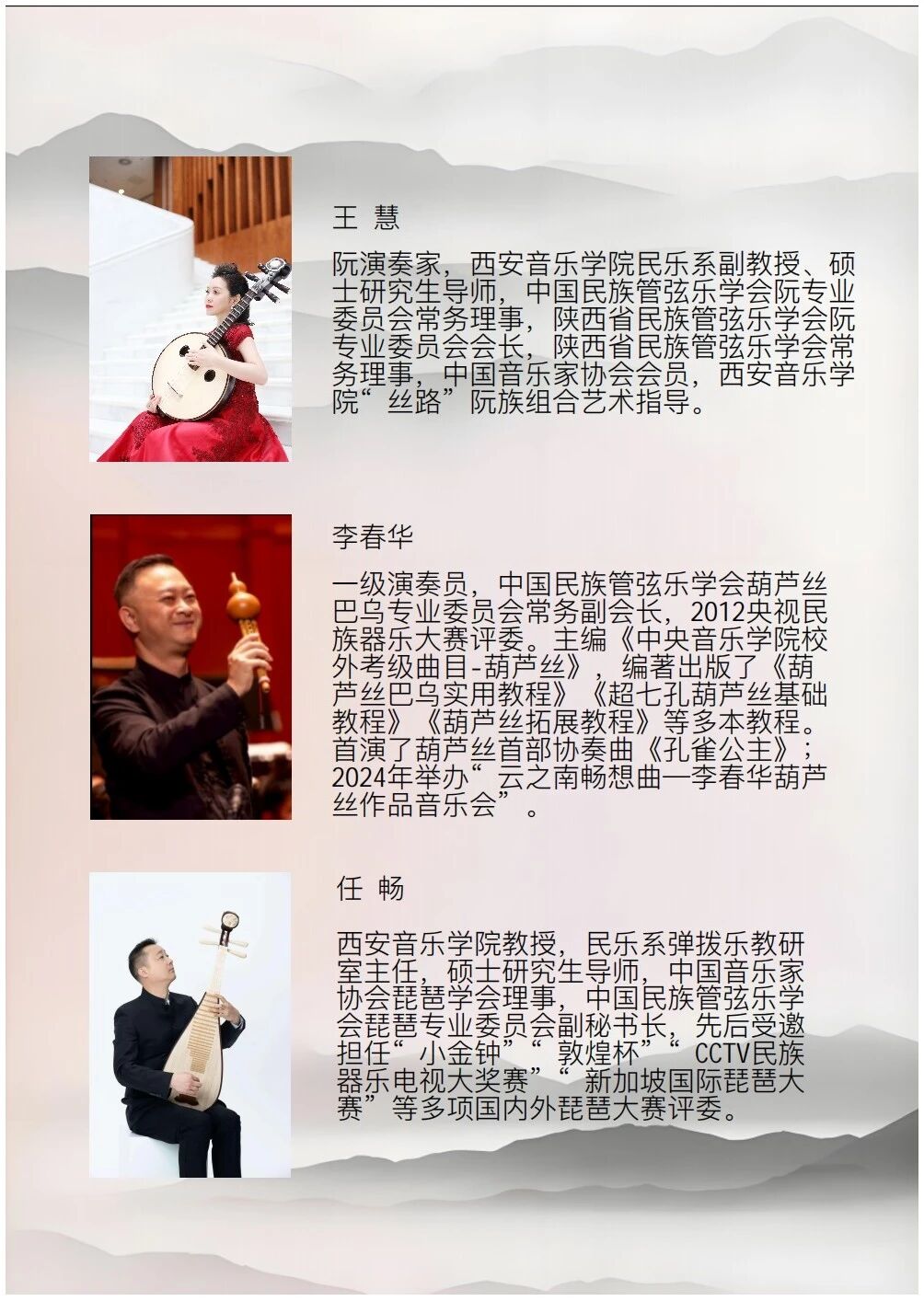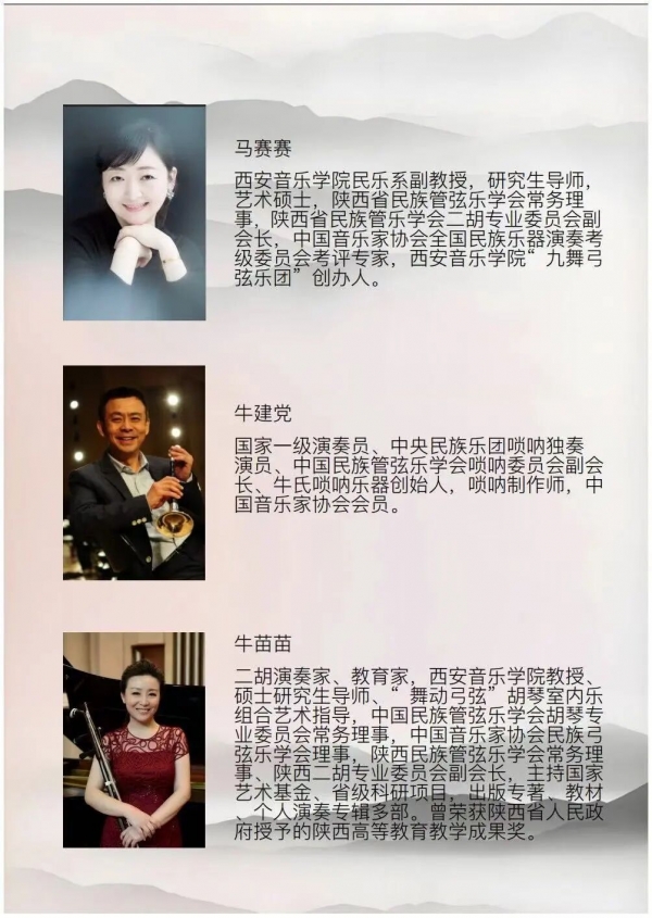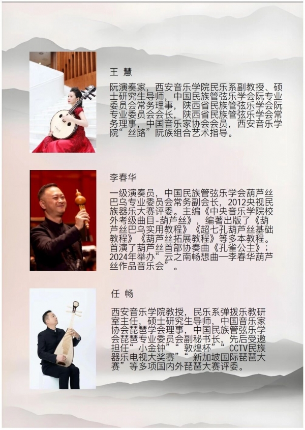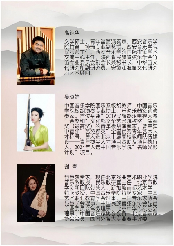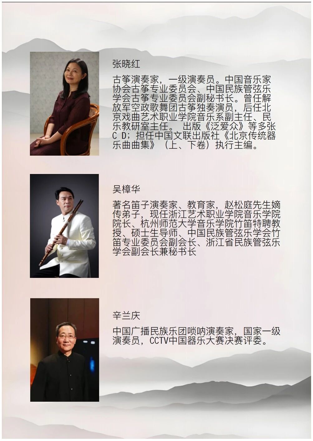 在比赛期间,组委会特邀请多位国乐名家为选手开展讲座活动,让选手们近距离感受艺术魅力,学习更多相关专业知识,扩大眼界,讲座题目另行通知。