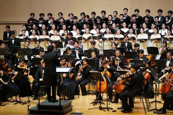 音乐会的压轴之作,是中国作曲家钟峻程创作的第十五交响曲《壮族大歌》管风琴、合唱与交响乐队作品。这部作品规模宏大、气势磅礴。其中,知名演奏家徐宁担任管风琴演奏,其精湛的技艺为作品增添了厚重的色彩,广西艺术学院合唱团的加入,以和谐优美的和声,丰富了作品的表现力。该作品将壮族文化元素与交响乐、管风琴、合唱等艺术形式有机融合,生动展现了壮族文化的独特魅力与深厚底蕴,将整场音乐会推向高潮,赢得了现场观众雷鸣般的掌声。