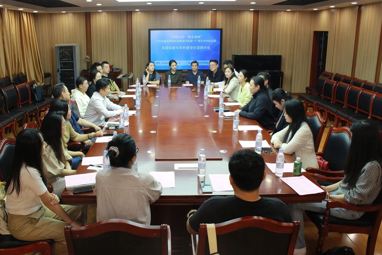 10月27日上午,“声韵交织 南北和鸣”——乐团实践与学科建设专题研讨会在我校顺利召开。中央民族大学音乐学院副院长王溪率领该院室内乐团教师团队参会,广西艺术学院音乐学院副院长梁寒琰代表学院对代表团的到访致以诚挚欢迎,两校专家学者围绕民族音乐发展核心议题展开深度对话。