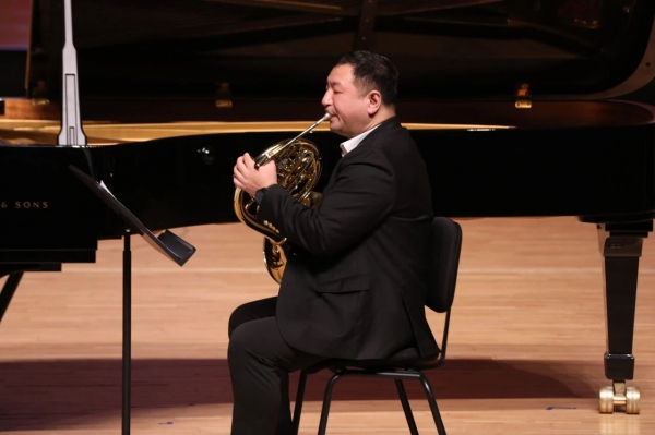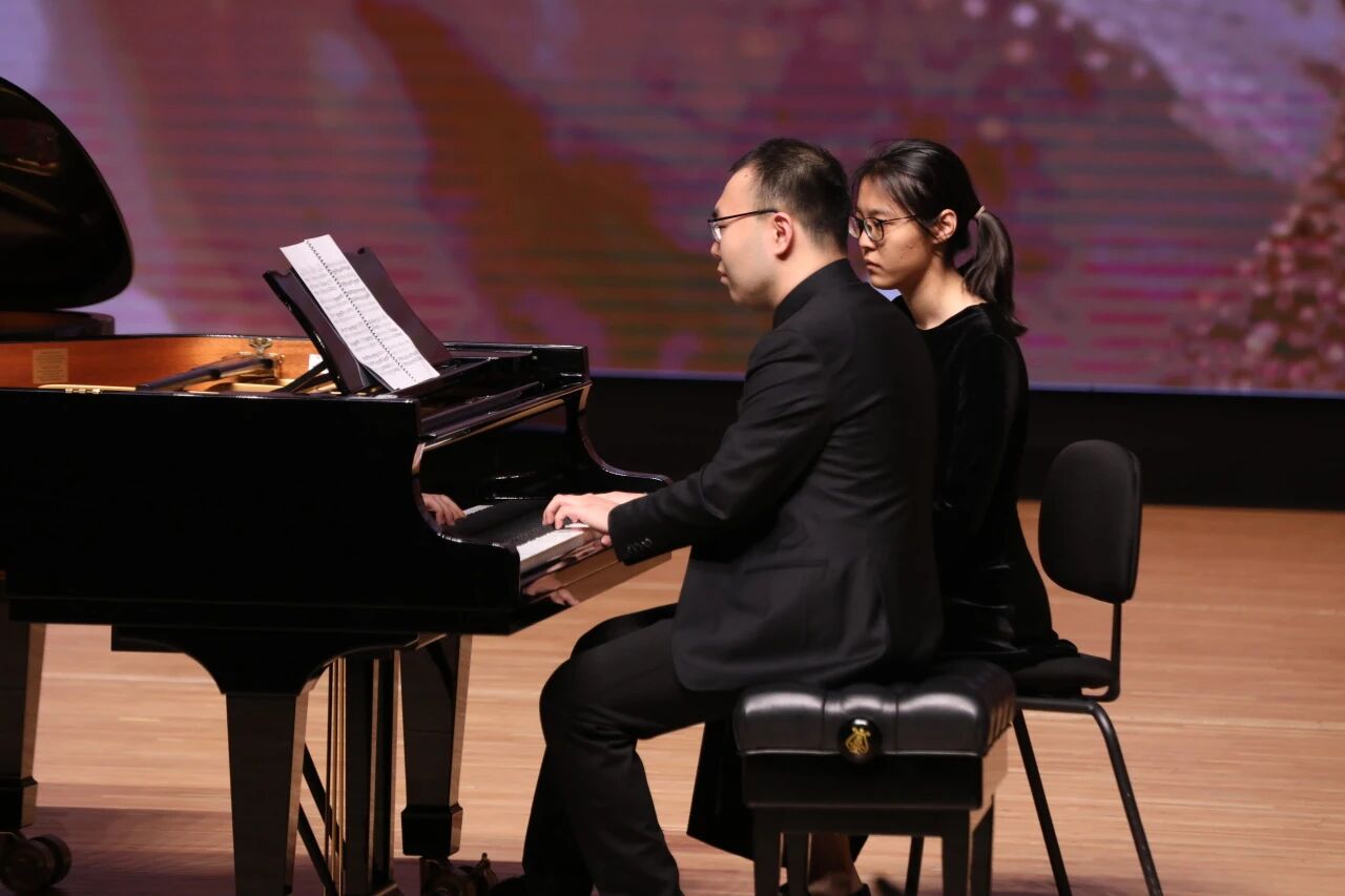 卓越的音乐往往刻录着艺术家来路的温度。对于门德尔松《F小调第六弦乐四重奏》(Op.80)来说,“琥珀四重奏”则更多展现出力量蓬勃的锐气与20年来默契交织出的稳健醇熟。《青玉案·元夕》与《你是我心中的挚爱》中,王传越(声乐歌剧系教授)在含蓄深情与强烈张力间游刃有余,源自从国际舞台到三尺讲台的历练与体悟。《加沃特舞曲及六首变奏》里,居觐(钢琴系教授)在巴洛克式的内敛中流露出克制的热诚,是从骐骥到伯乐的内省。与安天旭共奏的莫扎特《D大调双钢琴奏鸣曲》(K. 448)第一乐章,更加凸显她作为一名成熟演奏家的沉稳与自如。而安天旭的演绎则正如其在柴科夫斯基国际音乐比赛上所表现出的气质,以生动和活力彰显自信与勇气。