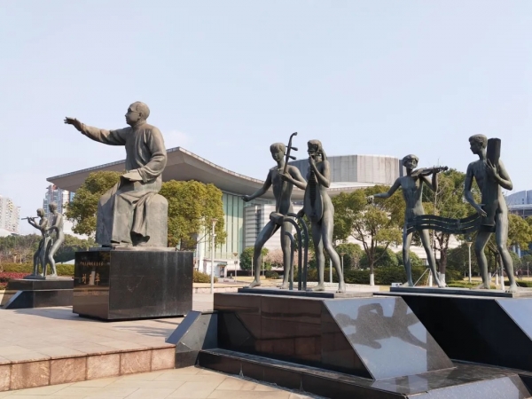 江阴天华文化中心广场上,刘天华人物雕塑静静矗立于此。