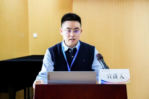 第五位宣讲人来自山东大学艺术学院的于凯文,论文题目是《九曲承韵,新潮致远——评〈长河入海〉中的传统持守与当代转译》。文章通过分析《长河入海》如何以黄河奔腾入海为意象,巧妙地运用齐鲁音乐元素,在速度布局、配器手法等方面具有独特的构思,实现了将传统民乐与创新元素融合,体现了作曲家在传统持守与当代转译中的创作理念。文章包括四个部分,第一部分探讨了民间音乐的地域特色与普适性问题,指出作曲家在齐鲁元素的植入上运用了山东民歌《沂蒙山小调》和鲁西南鼓吹乐的素材,既体现了齐鲁风情,又把握了《写意齐鲁》的整体风格。第二部分探讨了音乐平衡的精妙构建,分析了作曲家在这部作品中所构建的多维度音乐张力,及其对听众的情感冲击。第三部分探究了当代民歌创作中“守”与“变”的辩证关系,强调了当代民乐创作需扎根中华文化的土壤,以开放的姿态融合民族精神、地域特质与时代语汇,最终达成深层的情感共振。在专家评议环节,吴晓萍教授指出文章的主题明确、逻辑线条清楚。文章的不足在于:第一部分“地域特色与普适性”中的“普适性”指向不够清晰;文章对“8个音”的分析较为空泛;标题中的“守”、“变”在第三部分略显失衡;还有一些用词问题。白晓炜教授指出需要对《写意齐鲁》进行整体介绍,还需要加入对乐队结构与鲁西南鼓吹乐的比较分析。此外,文章中出现了一些对听众的主观推测,对于创新的价值认定也较为主观,用词需要更加严谨、平实。孙志鸿教授指出文章缺少对曲式结构的分析。蒲方教授指出一些用词问题,如“大过程”,“音乐能量平衡”等,价值判定也不够朴实。
