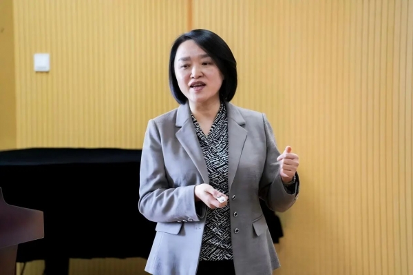 彭丽教授的讲座题目为《民族管弦乐艺术的当代阐释》,她系统梳理了中国民族管弦乐的发展脉络与当代特色,并从历史、空间和创作三个维度进行了深入探讨。在时间轴线上,民族管弦乐的起点可以追溯至1920年“大同乐会”,随后经历了从城市业余社团到专业化乐团的演变。1950年代形成了“乐队编制—乐器改革—乐曲创作”并行发展的格局,80年代以来又受到现代作曲技法影响,进入多元化与个性化的创作阶段。从空间维度看,民族管弦乐经历了由民间到舞台、由地方到全国再到国际的转变,呈现出多元融合的特征,既承载传统文化精神,又吸纳现代艺术元素。从音乐语言层面看,民族管弦乐的艺术表达历经由民间曲调、功能性和声到现代技法的转化。彭教授指出,当代民族管弦乐在守护民族性的同时,应强化时代性与个性表达,探索原生态与现代性的融合。最后,彭丽教授总结了民族管弦乐在国内外的影响力,并展望了其未来的发展前景。