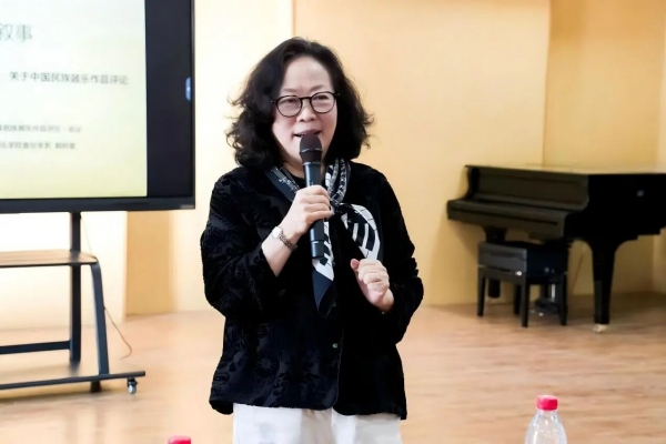 第二场讲座是郭树荟教授带来的《聆听分析与文字叙事的多重意义——对中国民族器乐作品评论的思考》。她主要围绕中国民族器乐作品的评论与研究,提出了三方面建议。首先,在题材方面强调了民族器乐作品评论应补充对民族协奏曲、民族室内乐与独奏三种体裁的关注。其中,民族协奏曲虽源于西方,但在中国已有成熟发展,然而部分作曲家却回避这一术语;民族室内乐自20世纪40年代起步,经中西手法融合逐渐形成固定形式,比如《田头练舞》;独奏作品以二胡为代表,自刘天华起,奠定了中国二胡艺术的高峰,但相关的作品评论略显不足。其次,郭树荟教授提到当前乐评较为依赖西方分析模式,如曲式、调性等,难以体现出中国音乐的独特性。她提倡从表演者的角度去分析,通过细致聆听与舞台观察来提炼第一手资料,使评论更鲜活生动。同时,郭教授认为美学取向应是作曲家赋予作品情感的自然提炼,而非主观想象,要确保文字定义基于音乐的核心技术。最后,她呼吁大家要拓展研究视角,建议通过采访演奏家、指挥家及观众来获取多元资料。
