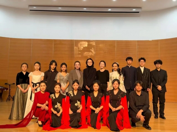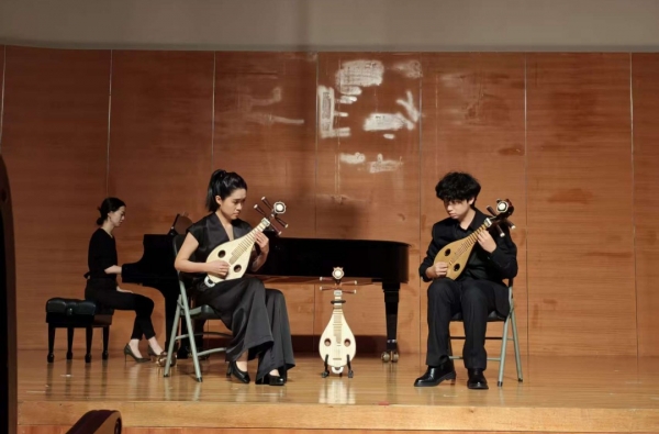 10月27日14时,弹拨教研室系列音乐会(一)于室内乐演奏厅奏响华章,为民族器乐系系列艺术实践活动拉开精彩序幕。其中民族室内乐《项脊轩》以音符为笔墨,与归有光的文字隔空对话;箜篌二重奏《故园无此声》描绘了纳兰性德望着故乡,心生思念和眷恋的画面;弹拨乐三重奏《品》在爵士律动中交织复调,诉说传承之思。筝重奏《大秦腔》将秦腔的苍茫与诗意在指尖奔涌;古筝重奏《在希望的田野上》则将时代的欢歌凝作希望的露珠。曲目丰富多元,既有古典意蕴的深度开掘,亦有当代精神的创新表达,是民族血脉中深沉情感的当代回响。