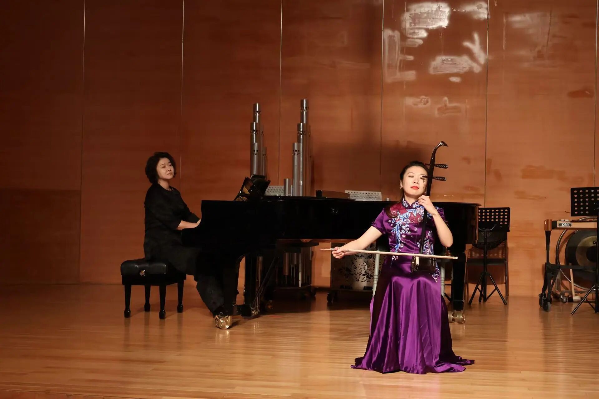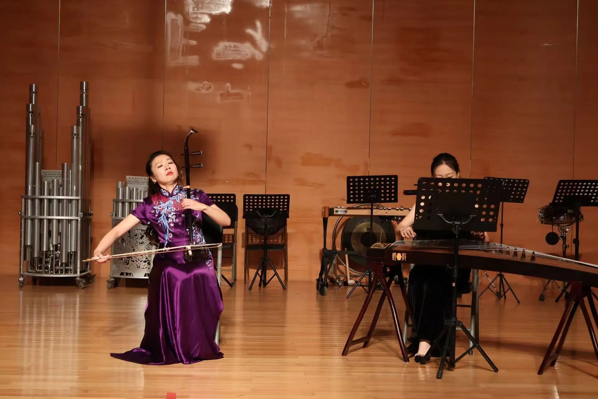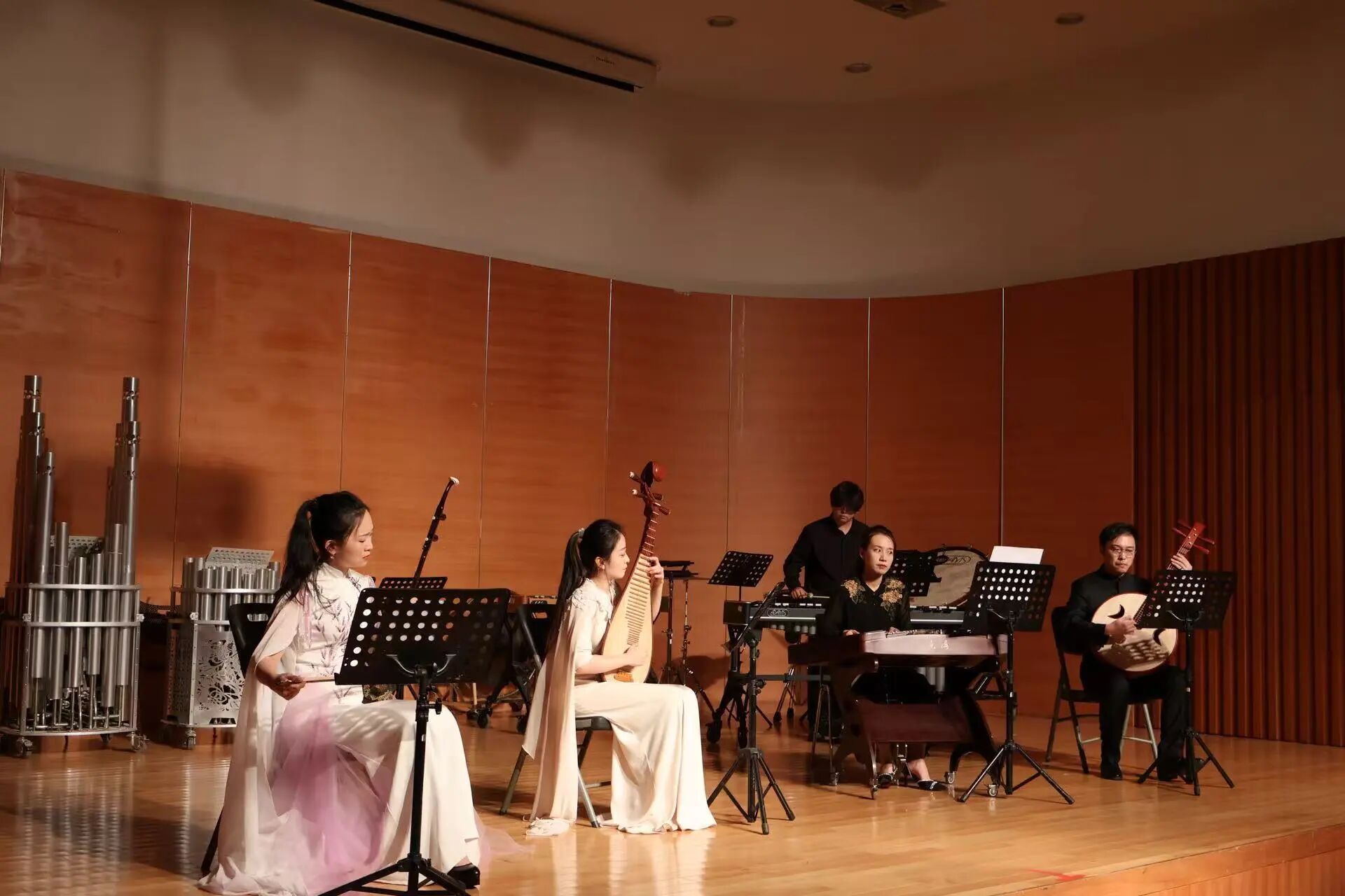芳华绽放,乐韵流长。民族器乐系秋季音乐会在经久不息的掌声中圆满落幕,这既是对金秋时节的艺术献礼,更是对教学相长的生动见证。四场音乐会如同四幅音画长卷,既有古曲的深沉隽永,亦见新声的探索突破。青年学子们以指尖流淌的旋律诉说文化传承的故事,用琴瑟和鸣的默契展现民族音乐的当代活力。舞台上每一个音符的精准演绎,都是无数个清晨与深夜勤学苦练的结晶;每一曲终了时的灿烂笑容,都闪耀着对民族音乐最赤诚的热爱。这场音乐盛宴不仅展现了教学体系日趋成熟的丰硕成果,更让我们看到传统艺术在新时代土壤中焕发的蓬勃生机。赓续薪火,砥砺深耕,民族器乐系师生必将以此次音乐会为新的起点,在守正创新中继续追寻民族音乐的永恒魅力,让穿越千年的丝竹之声,永远在时代的脉搏中铮铮作响。