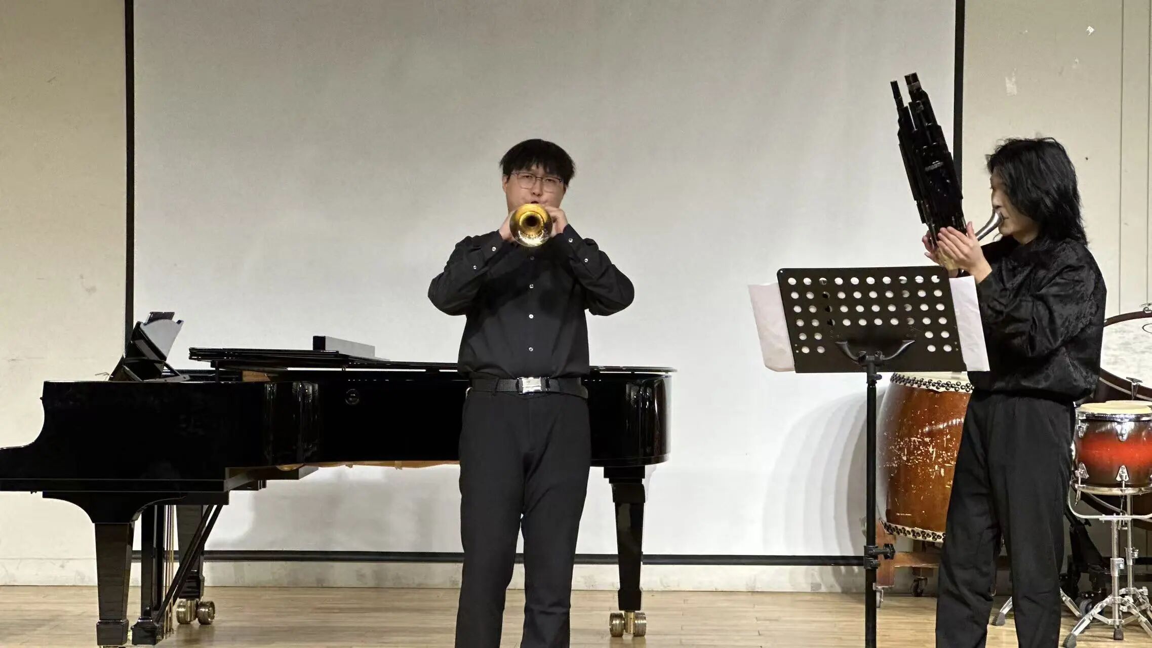 10月31日晚,管乐与打击乐教研室优秀学生音乐会在第二教学楼424多功能厅圆满举行。打击乐重奏《老鼠娶亲》以活泼谐趣的节奏点燃现场,《云之南》则用丰富音色铺就浓郁民族风情;笙独奏《冬猎》与《虹》以饱满音韵奏出北国壮阔与天地绚烂;竹笛独奏《三五七》气韵悠扬,勾勒出江南山水的婉约意象;唢呐独奏《湘江情》与《全家福》则以高亢深情的音色,穿透整个声场,诉说家国情怀与人情温暖。传统器乐在指尖流转之间,传递出属于这个时代的清澈回响。