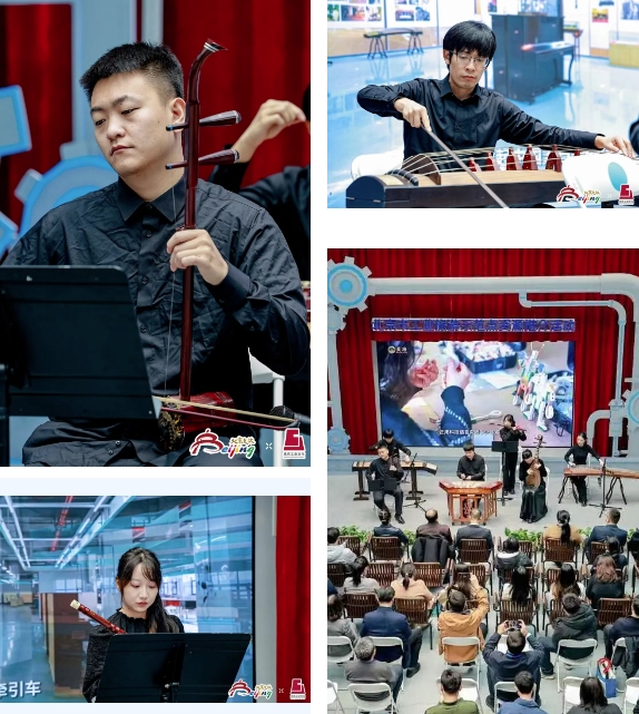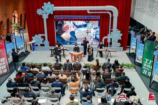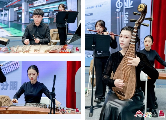 星海集团“星海民乐团”以精湛的民族器乐演奏拉开活动序幕。燕京八绝非遗技艺之金漆镶嵌 “天坛国乐・凤皇来仪” 民族乐器奏响古雅清韵,古乐器轧筝婉转发声,悠扬琴音与工业场景相映成趣,于古今碰撞间晕染出别样京城韵味,为整场推介会注入醇厚而鲜活的艺术活力。